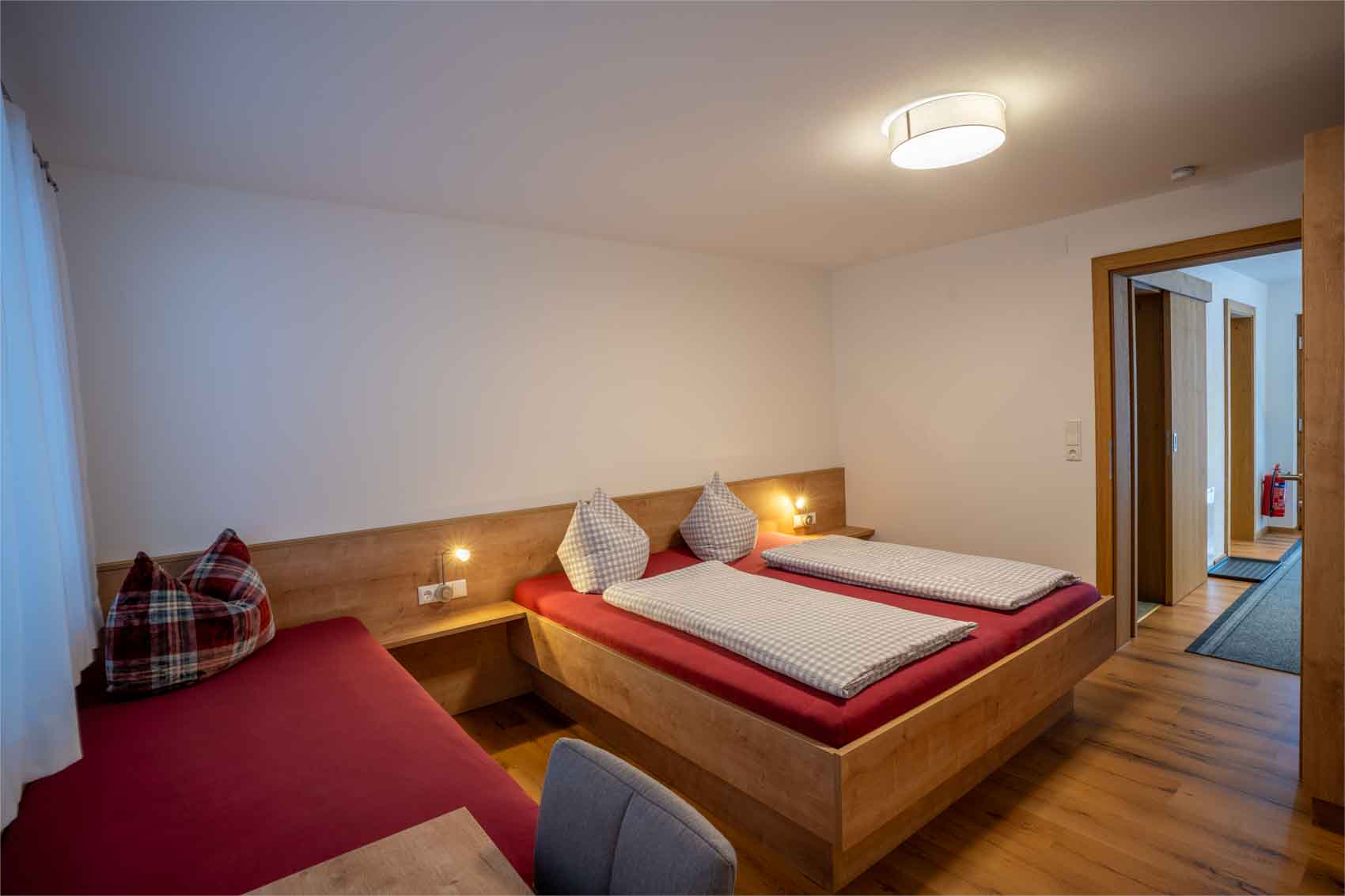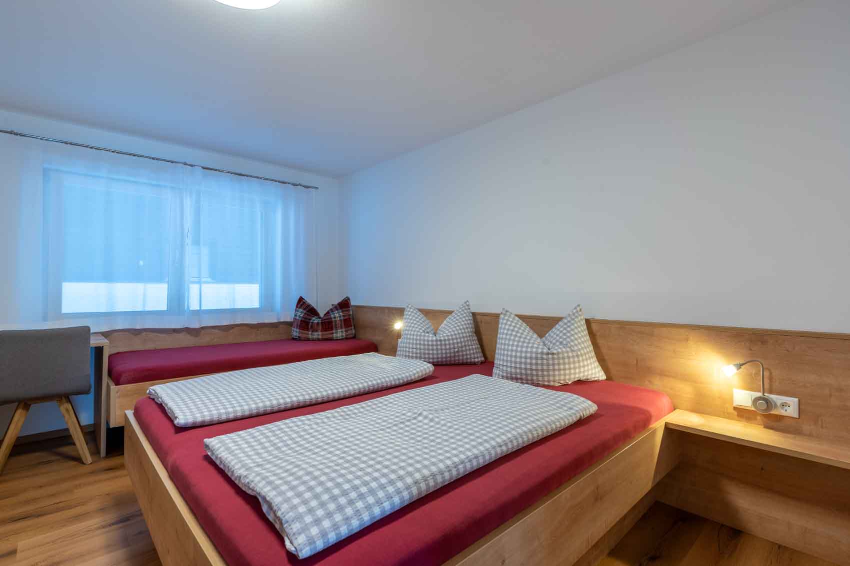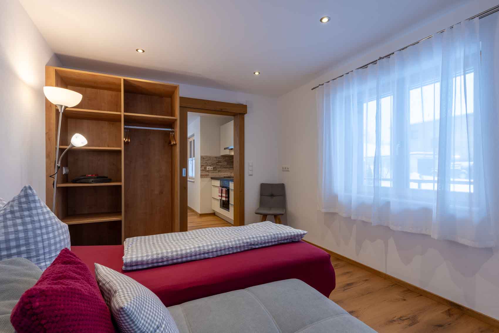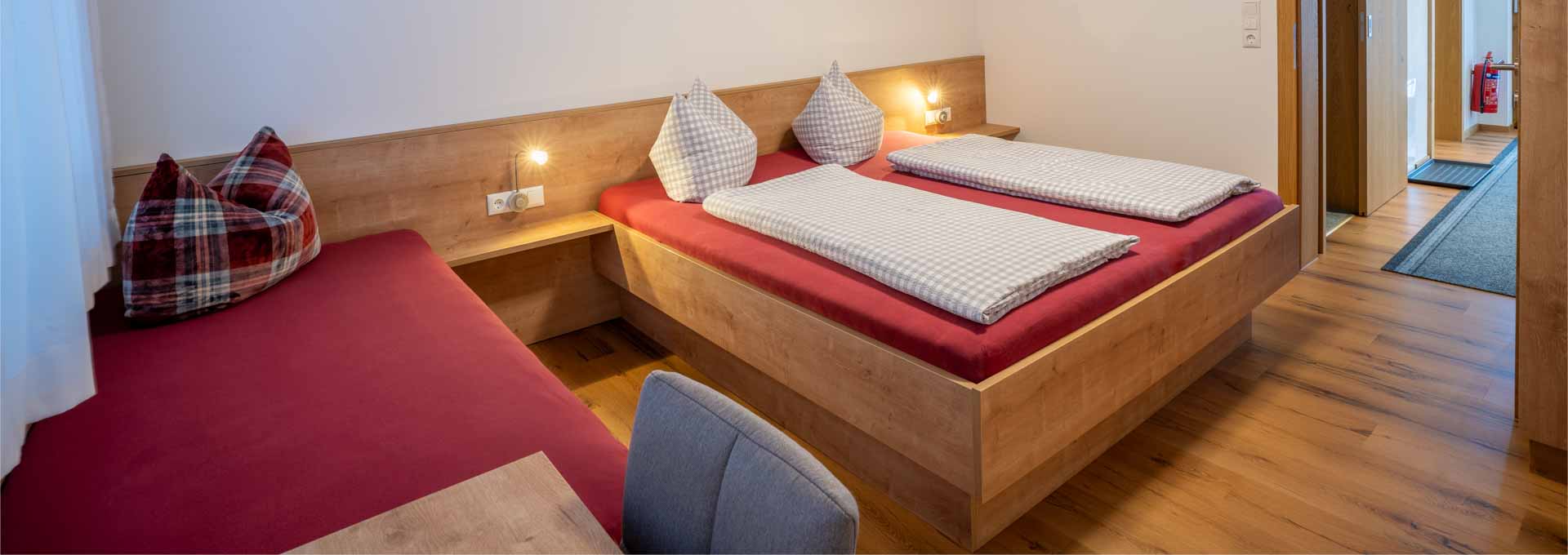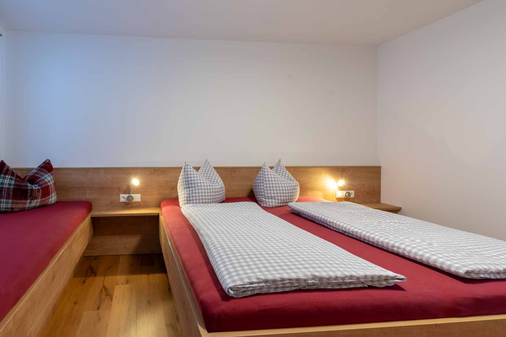 Unser gemütliches Appartement mit eigenem Eingang wurde von unserem Schreiner ausschließlich mit regionalen Holzsorten ausgestatten und bietet Platz für fünf Personen. Eine Kochgelegenheit ist ebenso vorhanden wie Bad und Dusche.